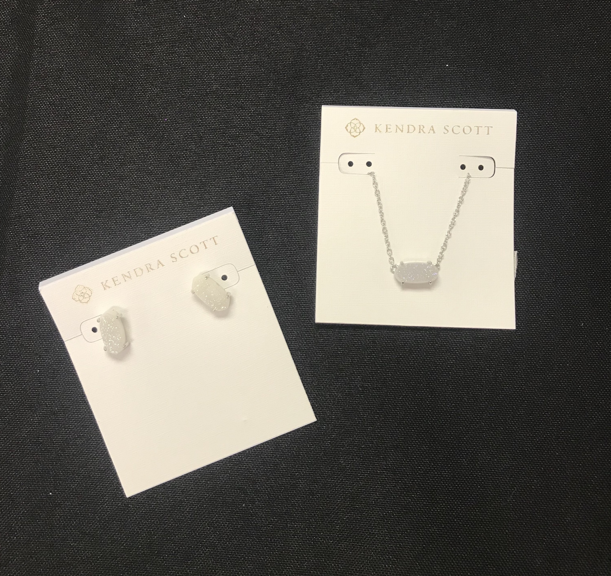 These dainty Kendra Scott Betty stud earrings in iridescent drusy are easy to wear and impossible to ignore! They pair beautifully with the Kendra Scott Ever necklace, an elegant necklace with a frameless, iridescent drusy pendant.