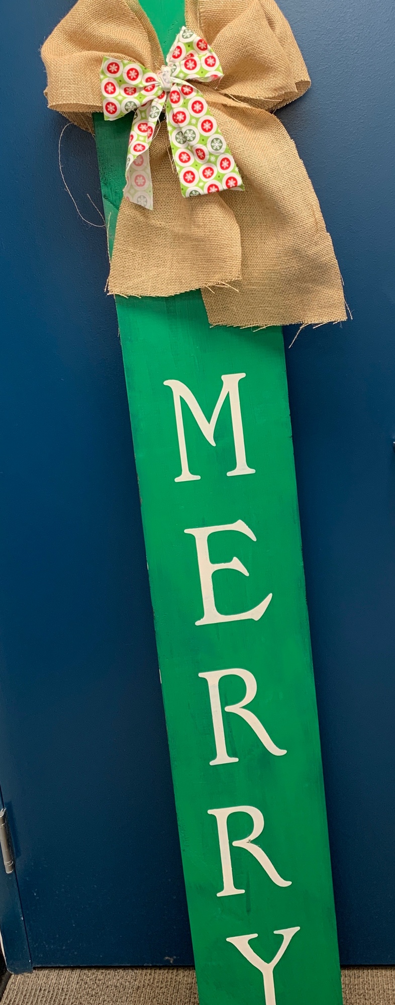 This 6-foot wooden decorative sign reads "Merry" on one side and "Gather" on the other.