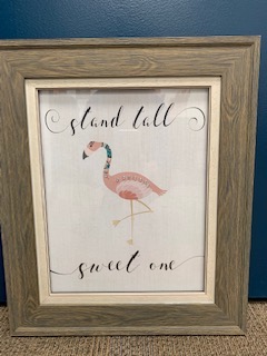 This 16" x 19" framed picture presents a pink flamingo and the encouraging message, "Stand tall sweet one."