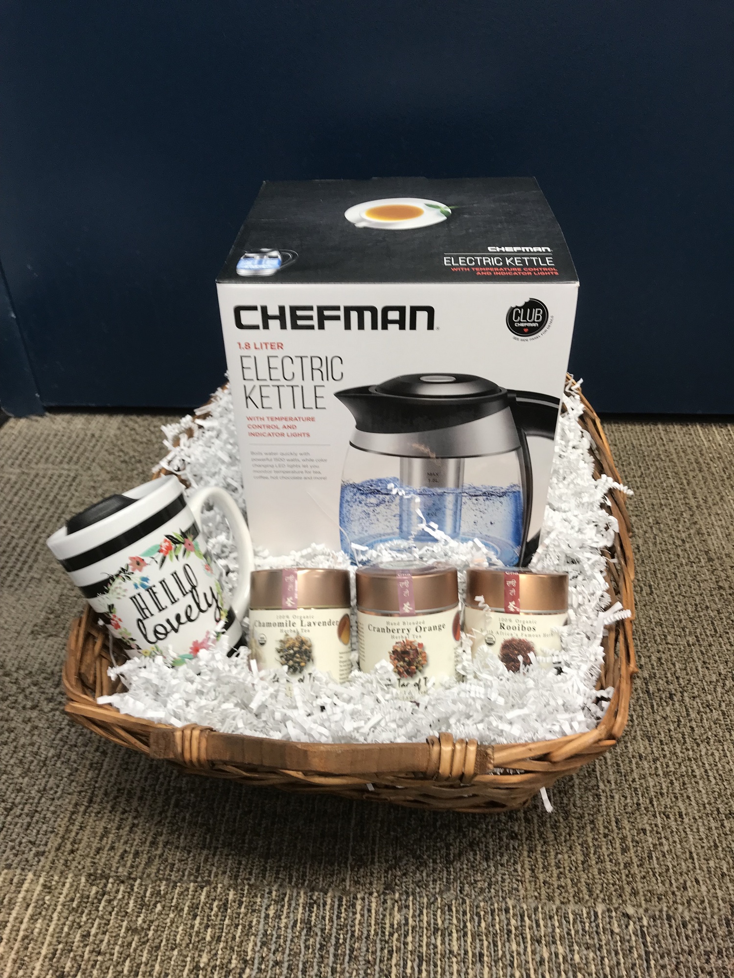 Whether you're looking to rehydrate, energize, or unwind, you will enjoy a prefect cup of tea with this Chefman Electric Glass Kettle. Choose from (3) 100% organic herbal teas from The Tao of Teas, and sip your tea in a "hello lovely" mug.