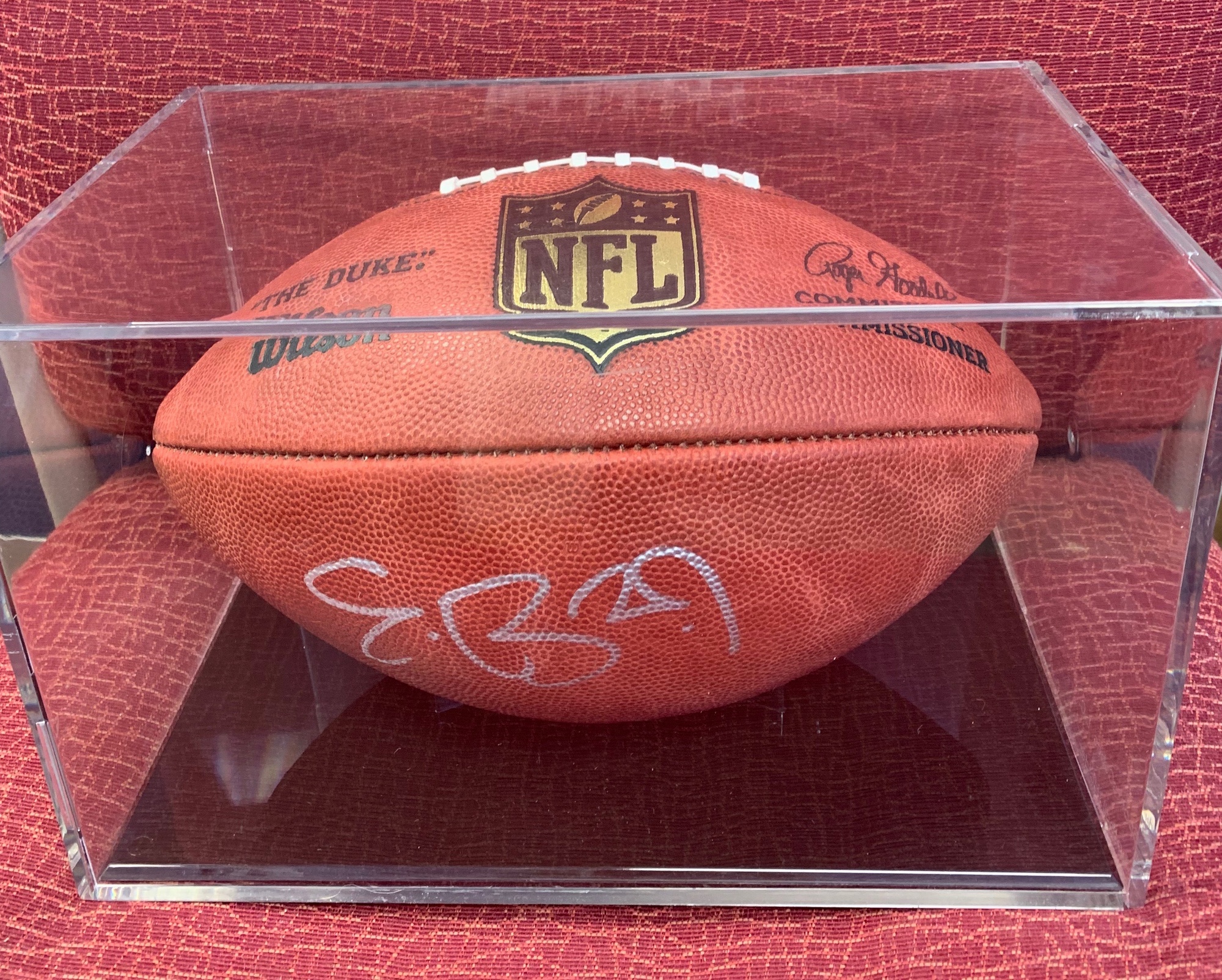 Eric Berry, the safety for the Kansas City Chiefs, signed this football! The football is displayed in a clear protective case.