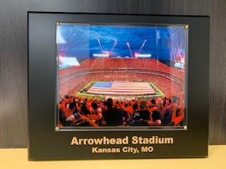 A photograph of Arrowhead Stadium is displayed in a beautiful black frame.